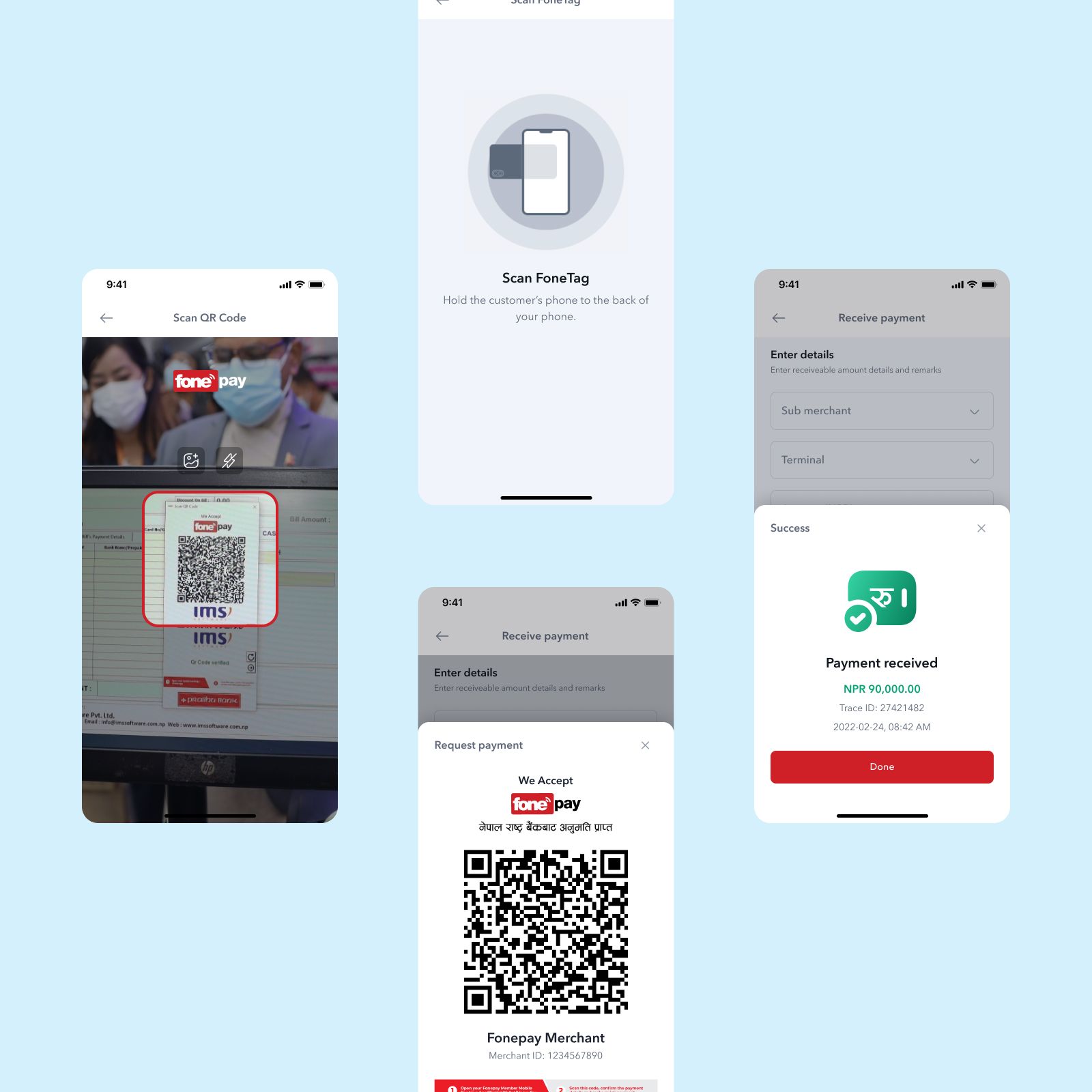 Merchants can accept NFC, CPQR, or Dynamic QR payments, and track transactions or process refunds—all within the Fonepay for Business app.